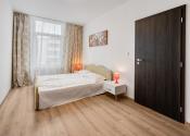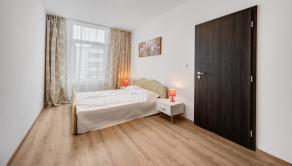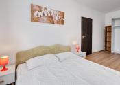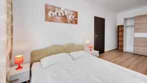 -nepriechodná spálňa s manželskou posteľou, nočnými stolíkmi a skriňou