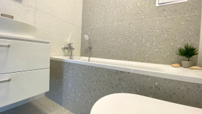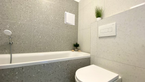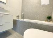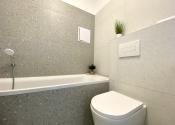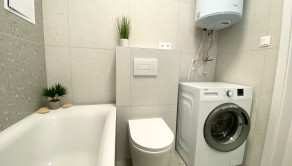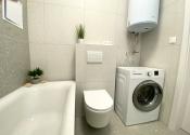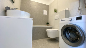 - kúpeľňa s toaletou vybavená vaňou, umývadlom, zrkadlom, práčkou a skrinkami