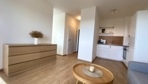 Realitná kancelária PORTO REAL GROUP Vám ponúka na prenájom veľmi pekný úplne nový 1 izbový byt v novostavbe v Miloslavove na Sekvojovej ulici. Ide o nový projekt Vilabyty Pri lesíku v obľúbenej lokalite Alžbetin dvor situovaný v tichej a kľudnej lokalite pri borovicovom háji s pekným výhľadom na okolie. Tento moderný byt s výbornou svetelnosťou sa nachádza na 2/4 poschodí, má rozlohu 30,70 m2 a disponuje loggiou (cca 5 m2), ako aj pivnicou na poschodí a parkovacím státím v garáži. Má výborné dispozičné riešenie, obývačka má veľkoformátové okno s prechodom na loggiu a priestor na spanie je oddelený priečkou, pričom je v tomto priestore ďalšie okno. Je kompletne a vkusne zariadený novým nábytkom, kuchyňa je vybavená kuchynskou linkou na mieru so spotrebičmi okrem umývačky riadu a v obývačke je rozkladacia sedacia súprava a komoda. Kúpeľňa s vaňou a toaletou je zariadená vo veľmi príjemných farebných tónoch a disponuje aj novou práčkou. V byte je podlahové kúrenie, integrovaná rekuperácia vzduchu, bude namontovaná aj klimatizácia a na oknách sú žalúzie a sieťka. Celkovo byt pôsobí veľmi príjemným dojmom a vďaka dômyselnej dispozícii sa v ňom necítite ako v malom byte. Veľkou výhodou je výborná občianska vybavenosť, pričom veľa záujmových bodov je v pešej dostupnosti. Výborná lokalita, ktorá sa vďaka novému obchvatu a napojeniu na rýchlostné cesty stala veľmi dobre a rýchlo dostupná do Bratislavy, aj na ostatné smery.