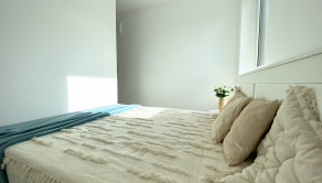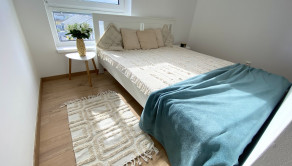 - spacia časť oddelená priečkou s manželskou posteľou s matracom a oknom