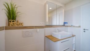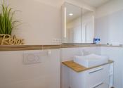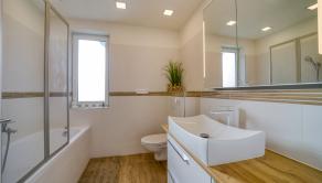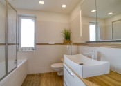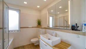 -kúpeľňa (6,10 m2) s vaňou, WC, umývadlom so skrinkou a zrkadlom