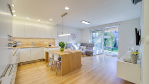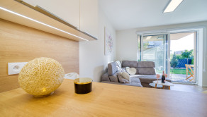 Realitná kancelária PORTO REAL GROUP Vám ponúka na predaj krásny a moderný 3-izbový byt s priestrannou záhradou a 2 parkovacími miestami v novostavbe viladomu v obľúbenej lokalite novej obytnej zóny „Pri hrádzi“ v Hamuliakove. Ide o atraktívnu nehnuteľnosť, ktorá má vďaka veľkoformátovým oknám vynikajúcu svetelnosť, je kompletne a vkusne zariadená nadčasovým nábytkom na mieru a je pripravená k nasťahovaniu bez potreby ďalších investícií. Byt je súčasťou samostatne stojaceho viladomu s 2 bytovými jednotkami, je situovaný na 1.NP, skolaudovaný bol v roku 2019 a keďže bol minimálne obývaný, pôsobí stále dosť novým dojmom. Jeho obytná plocha je 75,45 m2 a rozloha samotnej záhrady je 307 m2. Vďaka výbornej dispozícii sa dá využívať na bývanie spojené s podnikaním, nakoľko v 1 miestnosti je momentálne plne vybavená prevádzka kaderníctva a byt má okrem kúpeľne s vaňou a toaletou k dispozícii aj ďalšie samostatné WC s umývadlom. Kuchyňa je zariadená kuchynskou linkou na mieru so všetkými spotrebičmi a je spojená s obývačkou, z ktorej je východ na terasu a do slnečnej záhrady, ktorá má udržiavaný trávnik s automatickou závlahou a prevažujú v nej stálozelené dreviny nenáročné na údržbu. K dispozícii je aj kvalitná robotická kosačka Husqvarna, ktorá bola pravidelne servisovaná. Túto oázu relaxu dotvára aj dvojmiestne lehátko umiestnené na terase a možnosť dobudovania záhrady podľa vlastného vkusu a potreby, napr.jacuzzi, ihrisko pre detské aktivity, a iné. Byt disponuje podlahovým kúrením, klimatizáciou a dostatkom úložného priestoru. V spálni sú 2 veľké vstavané skrine, jedna je trojdielna a ďalšia až šesťdielna a v chodbe je ďalšia vstavaná skriňa. Energetický certifikát A a vlastný kotol zaručujú optimálne náklady na bývanie. Nový majiteľ rozhodne ocení, že daná lokalita poskytuje kľud a ticho a celkovo toto bývanie aj vďaka priestrannej slnečnej záhrade navodzuje atmosféru a komfort bývania v rodinnom dome. Veľkým benefitom sú 2 parkovacie miesta pred domom v cene nehnuteľnosti, ako aj výborná strategická poloha, nakoľko sa do BA dostanete za 15 minút a do Šamorína za 5 minút. Lokalita má dobrú občiansku vybavenosť, v pešej dostupnosti sa nachádzajú škola, škôlka, zastávka MHD, pošta, reštaurácie, potraviny a iné. Všetky tieto aspekty predurčujú tento skvelý byt ako ideálne bývanie aj pre mladé rodiny s deťmi, alebo pre aktívnych ľudí, ktorí preferujú komfort prímestského bývania a zároveň atmosféru moderného vidieka so všetkými jeho benefitmi.