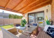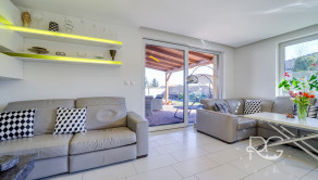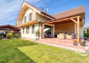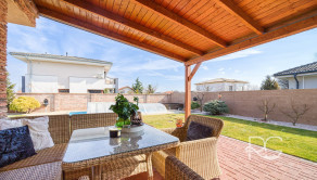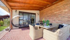 -ďalšou nespornou výhodou je prekrytá terasa spojená s krásnou slnečnou záhradou s bazénom s protiprúdom, slúžiacou