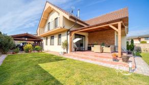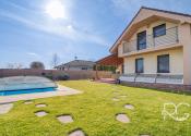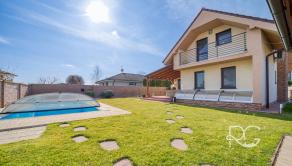 Realitná kancelária PORTO REAL GROUP vám ponúka na predaj krásny samostatne stojaci dvojpodlažný rodinný dom s bazénom vo vyhľadávanej lokalite v Kvetoslavove na Astrovej ulici. Tento 5 izbový rodinný dom s 3 kúpeľňami, situovaný na pozemku o výmere takmer 7 árov bol skolaudovaný v roku 2011 a nachádza sa v tichej a kľudnej lokalite. Dom s úžitkovou plochou 259,39 m2 má výborné dispozičné riešenie a predáva sa zariadený nábytkom na mieru (ostatné zariadenie je na dohode s majiteľom). Kúrenie je teplovodné podlahové zabezpečené vysokovýhrevným plynovým kotlom Buderus, ktorý bol inštalovaný pred 3 rokmi, klimatizačné jednotky sú na 2.NP v každej izbe. Ide o veľmi kvalitnú stavbu, na výstavbu ktorej boli použité tehly Porotherm 380 mm, zateplenie polystyrénom, strecha je pultová so škridlami Bramac. V dome boli použité nadštandardné materiály, krb aj schodisko sú obložené mramorom a plastové okná najvyššej kvality sú vybavené exteriérovými elektrickými žaluziami. Medzi technologické vymoženosti patrí centrálny vysávač od firmy Beam, ako aj dizajnový digestor odsávania pár v kuchyni. Nový majiteľ rozhodne ocení nádhernú udržiavanú slnečnú záhradu s dospelou vegetáciou, trávnikom s automatickou závlahou a vybetónovaným osvetleným bazénom s prekrytím. Túto dokonalú oázu oddychu dotvára krásna vyvýšená terasa so sedacou súpravou a lehátkom a altánok s murovaným grilom a záhradným domčekom. V dome je dostatok úložného priestoru aj vďaka pochôdznemu podkroviu (15 m2) a čiastočnému podpivničeniu (21,60 m2). K dispozícii sú všetky inžinierske siete, optický kábel je od Telekomu, dom je napojený na alarm. Benefitom je aj prístrešok vpredu pre 2-3 autá. Dom je výbornom udržiavanom stave a uspokojí aj náročnejšieho klienta.