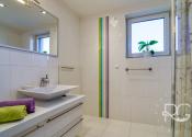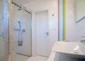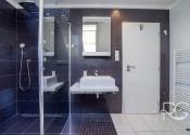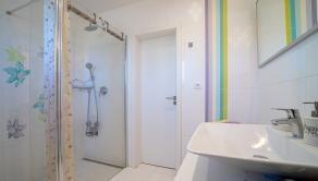 -kúpeľňa so sprchovacím kútom a umývadlom so zásuvkami