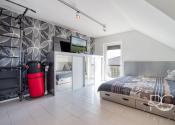 -nepriechodná izba s manželskou posteľou, skriňami a balkónom
