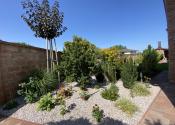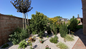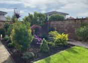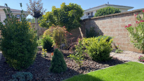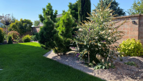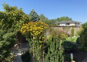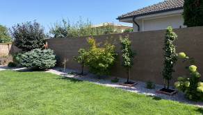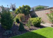 majiteľom na relax, veľmi vkusne upravená okrasnými drevinami s dôrazom na nenáročnú údržbu. Trávnik je udržiavaný, má