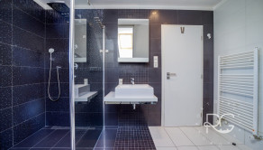 -kúpeľňa s vaňou, sprchovacím kútom, 2x umývadlom a toaletou