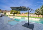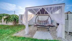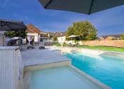 -ďalšou nespornou výhodou je veľký bazén s relaxačnou zónou, ktorý je možné prestrešiť a prepojiť ho s domom