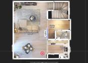 DISPOZÍCIA: 1NP: zádverie, WC s umývadlom, šatník - odkladací priestor pod schodiskom, schodisko, obývacia izba s kuchynským kútom a jedálňou. Z obývacej izby je prístup do záhradky s výmerou cca. 109 m2. 2NP: chodba, schodisko, 2 priestranné spálne a kúpeľňa so sprchovým kútom, vaňou a WC, technická miestnosť v kotlom.