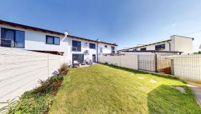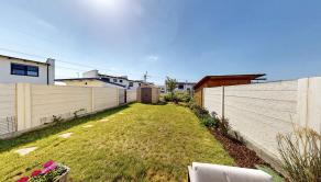 Záhrada má západnú orientáciou a je o výmere 109 m2 je prístupná z obývačky. Na záhrade sa nachádza terasa (veľkoformátová zámková dlažba). Zelená plocha záhrady je s automatickým zavlažovaním. Na odkladanie slúži záhradný domček v rohu pozemku.