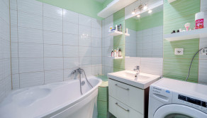 V byte zostáva len vstavaný nábytok, nakoľko ostatné zariadenie a spotrebiče sú majetkom nájomcov. Polohou patrí tento byt ku komplexnej forme bývania, nakoľko je situovaný v tichej a kľudnej lokalite, ale zároveň je tu dobrá občianska vybavenosť a všetko potrebné je na dosah. 5 minút pešou chôdzou je vzdialený City Park Rovinka, kde je k dispozícii supermarket Billa, pekáreň, DM drogéria, reštaurácia, kaviareň, fitness centrum a iné a 3 min.od domu sú k dispozícii potraviny Kraj. Rovinka je momentálne jednou z najžiadanejších lokalít v blízkosti Bratislavy, nakoľko má vďaka novému obchvatu najrýchlejšiu dopravnú dostupnosť do hlavného mesta, ale aj na ostatné smery. Na Bajkalskú ulicu sa dostanete za 10 minút autom, do Šamorína taktiež za 10 minút. Lokalita je veľmi obľúbená aj pre možnosti športového vyžitia, nakoľko jazero Nové Košariská je vzdialené len 3,5 km od domu a obec ponúka aj možnosti cykloturistiky a prechádzok v okolí. Všetky tieto aspekty predurčujú tento skvelý byt ako ideálne bývanie pre ľudí, ktorí preferujú komfort prímestského bývania a zároveň atmosféru moderného vidieka.