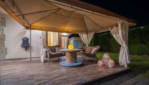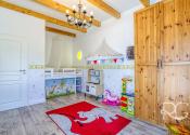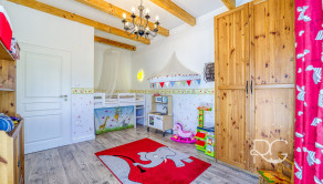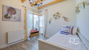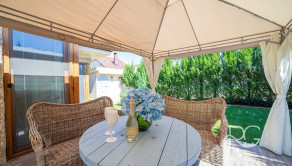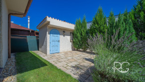 Realitná kancelária PORTO REAL GROUP vám ponúka na predaj nádherný dizajnový a veľmi vkusne zariadený 4izbový RD v štýle navodzujúcom stredomorskú atmosféru. Je situovaný v Rovinke v lukratívnej lokalite v blízkosti Veľkého jazera, kde sa domy dostávajú do ponuky veľmi zriedkavo. Ide o veľmi kvalitne postavený samostatne stojaci dom, ktorý je vyšperkovaný do posledného detailu, nakoľko si ho majiteľ staval a dizajnoval pre seba. Bol skolaudovaný v roku 2016, jeho rozloha je 141 m2 vrátane vyvýšenej terasy (24 m2) a rozprestiera sa na pozemku o rozlohe 356 m2. Na jeho výstavbu boli použité tehly Wienerberger 38 cm, ktorá má výborné termoizolačné vlastnosti, zateplenie polystyrénom 10 cm a strecha domu je z talianskej pálenej škridle. Kúrenie je zabezpečené vysokovýhrevným elektrickým kotlom a radiátormi, na prípravu teplej vody slúži elektrický bojler, ktorý je možné programovať aj na diaľku prostredníctvom mobilného telefónu. V chladnejších mesiacoch prispievajú k romantickej atmosfére aj vysokokvalitné výhrevné kachle Romotop na drevo, ktoré sú umiestnené v obývačke. Odvod odpadových vôd je zabezpečený prostredníctvom septiku s objemom 10 m3 a na pozemku je 12 m vŕtaná studňa (7 m vodný stĺpec) s pitnou vodou. Okná sú plastové so žalúziami a sieťkami proti hmyzu. Dom je dvojpodlažný a má vynikajúce dispozičné riešenie. Za vstupnými dverami sú predsieň a chodba s úložným priestorom, technická miestnosť, kúpeľňa s vaňou a samostatné WC. Prvému podlažiu dominuje priestranná obývacia miestnosť prepojená s kuchyňou a jedálenským kútom, ďalšie 2 izby sú neprechodné. Interiér komunikuje s exteriérom, keďže z každej miestnosti je východ na terasu a do krásnej udržiavanej záhrady plnej zelene. Ďalšia neprechodná izba je hlavná spálňa, ktorá je spolu s kúpeľňou dômyselne umiestnená na 2.podlaží čo zaručuje majiteľovi dostatok súkromia. Celý dom má úžasnú svetelnosť a vysoké stropy, na najvyšších miestach dosahujú takmer 3,7 m, v izbách na obidvoch podlažiach je svetlá výška 2,8 až 2,9 m. Túto dokonalú oázu pokoja dotvára terasa s plachtovým prestrešením a sedacou súpravou a vzadu na pozemku je aj veľmi autentický murovaný záhradný domček s plochou 6 m2 s osvetlením, takisto exteriér domu je výborne osvetlený. Na pozemku hneď za bránou na diaľkové ovládanie je spevnená plocha na parkovanie pre 2 autá. Ideálna orientácia domu: východ, juh, západ. Dovolenkovú a prímorskú atmosféru tohto jedinečného bývania umocňuje prístup na súkromnú pláž Veľkého jazera, ktoré je známe svojou extrémne čistou vodou a neobmedzenou ponukou možností vodných športov, potápania, otužovania a relaxovania (nie je predmetom prevodu vlastníckeho práva a je vzdialená cca 120 m od domu). Obrovským benefitom tejto modernej novostavby je jej umiestnenie v uzavretej bezpečnej a kľudnej lokalite s prístupom cez Dunajskú Lužnú, Nové Košariská a zároveň vynikajúca dopravná dostupnosť do Bratislavy po novootvorenom obchvate D4R7.