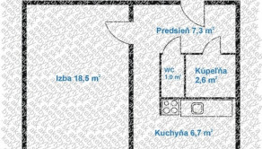 • Dispozícia: priestranná izba, samostatná kuchyňa, samostatná kúpeľňa a samostatné WC, predsieň