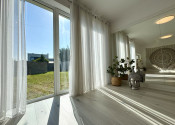 -veľkoformátové okno v obývačke poskytuje výhľad do záhrady a dostatok prirodzeného svetla
