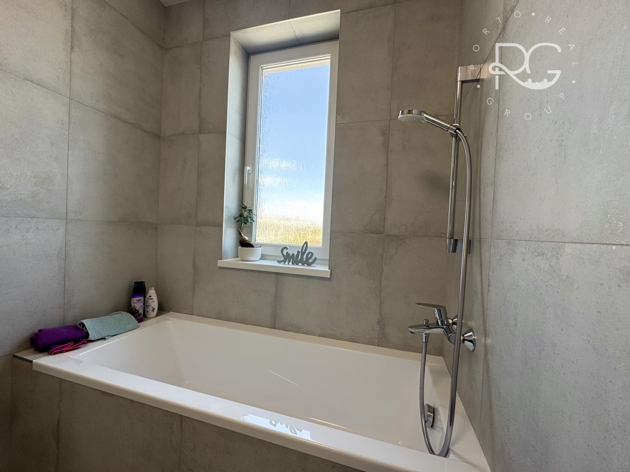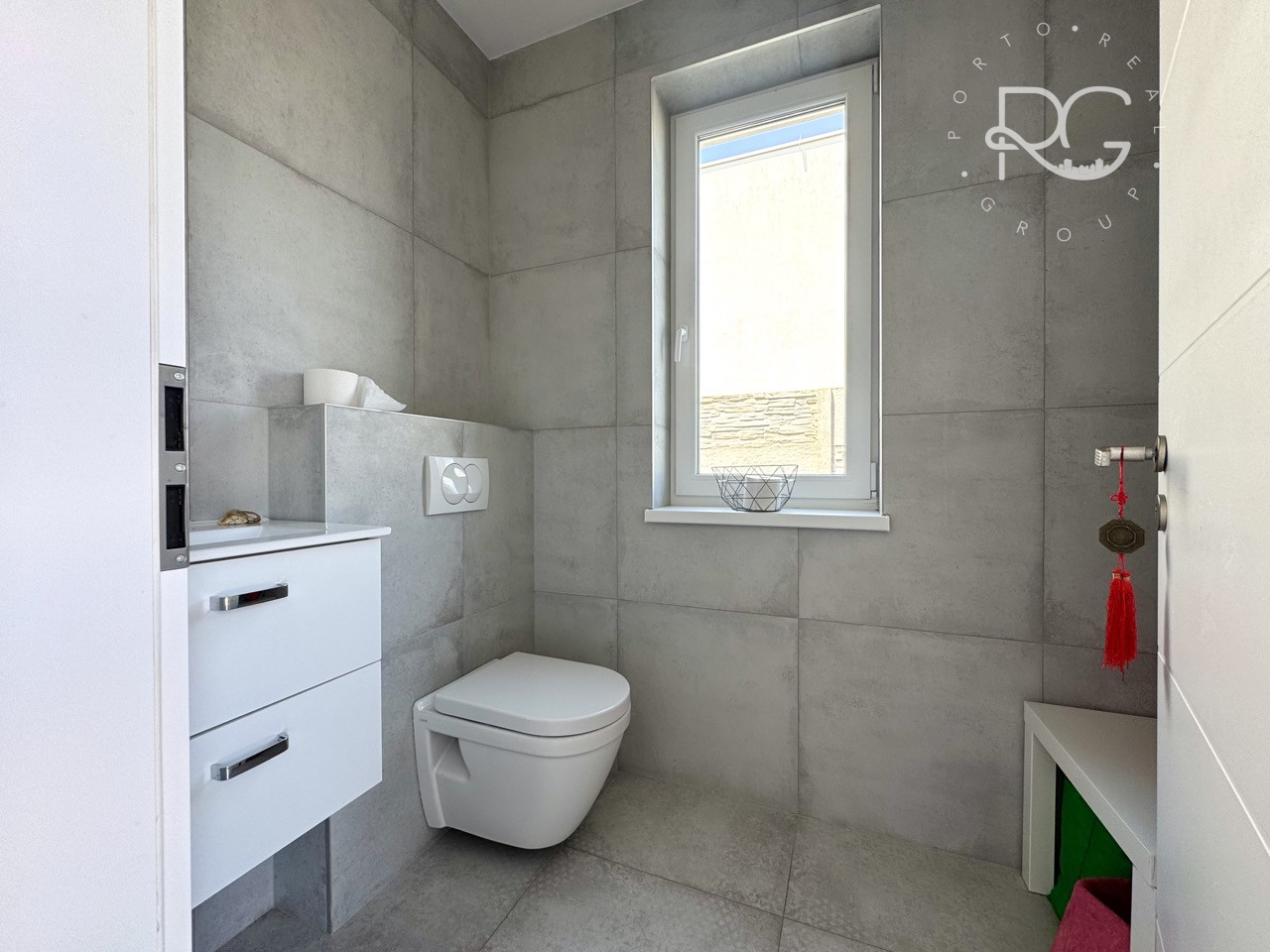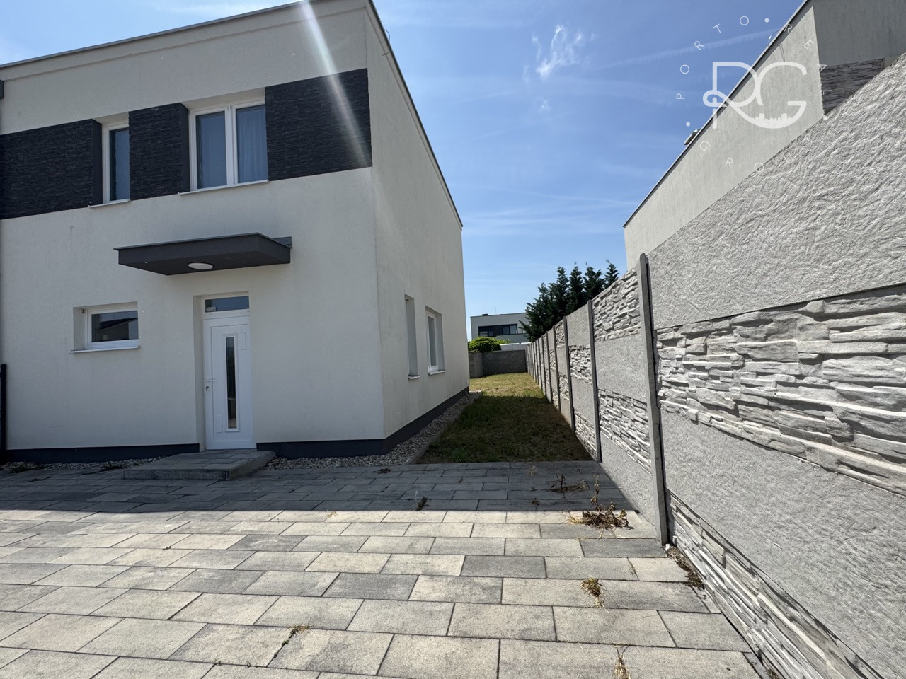 Realitná kancelária PORTO REAL GROUP Vám ponúka na predaj pekný a moderný 4-izbový RD so slnečnou záhradou, ktorý je súčasťou tehlového dvojdomu situovaný vo veľmi peknej a kľudnej lokalite v Rovinke na Nechtíkovej ulici. Bol skolaudovaný v roku 2020 a jeho podlahová plocha je 104,32 m2. Rozprestiera sa na takmer trojárovom pozemku, za automatickou bránou je parkovisko pre 3 autá a za domom je záhrada, ktorú si nový majiteľ môže vybudovať podľa vlastných predstáv. Na výstavbu boli použité tehly 300 cm, zateplenie polystyrénom 15 cm a okná disponujú izolačným trojsklom. Vykurovanie je samostatné teplovodné podlahové zabezpečené plynovým kotlom. V dome je predpríprava na krb, k dispozícii sú všetky inžinierske siete, samozrejmosťou je mestský vodovod a kanalizácia. Dom je zariadený v štandarde, nový majiteľ si môže dorobiť kuchyňu podľa vlastného vkusu. Interiér domu je dômyselne rozdelený na dennú a nočnú časť, má výborné dispozičné riešenie a veľmi dobrú svetelnosť. Na 1.NP je vstupná chodba, technická miestnosť, toaleta a priestranná obývačka spojená s kuchyňou, odkiaľ je výstup do záhrady cez veľkoformátové okná. Na 2.NP sa nachádzajú 3 neprechodné izby, priestranná kúpeľňa s vaňou aj sprchovacím kútom, dvojumývadlom so skrinkou a toaletou. Nový majiteľ rozhodne ocení, že daná lokalita poskytuje kľud a ticho ideálne pre rodinný komfort bývania. Nespornou výhodou je výborná strategická poloha, nakoľko sa do BA dostanete za 10 minút a do Šamorína za 10 minút, čo momentálne robí z Rovinky jednu z najrýchlejšie dostupných lokalít v okolí BA so žiadnymi, alebo minimálnymi dopravnými zápchami. Lokalita má výbornú občiansku vybavenosť, v pešej dostupnosti sa nachádza City Park Rovinka, kde je k dispozícii supermarket Billa, pekáreň, DM drogéria, reštaurácia, kaviareň, fitness centrum a iné, ďalej škôlka, zastávka MHD, reštaurácie, kaviarne, cukráreň, základná škola je dostupná za 3 min. autom. Lokalita je veľmi obľúbená aj pre možnosti športového vyžitia, nakoľko jazerá Košariská sú vzdialené len 4 km od domu a obec ponúka aj možnosti cykloturistiky a prechádzok v okolí. Všetky tieto aspekty predurčujú túto nehnuteľnosť ako ideálne bývanie či už pre mladé rodiny s deťmi, alebo aj pre aktívnych ľudí v strednom a vyššom veku, ktorí preferujú kľud a komfort prímestského bývania a zároveň atmosféru moderného vidieka so všetkými jeho benefitmi.