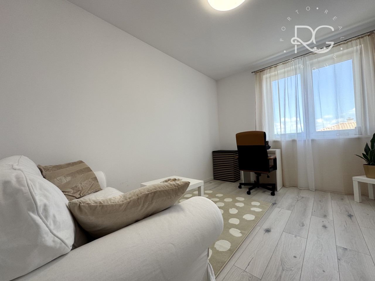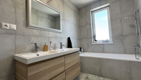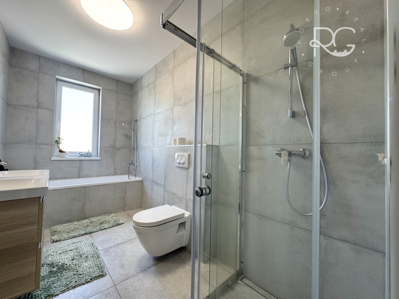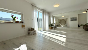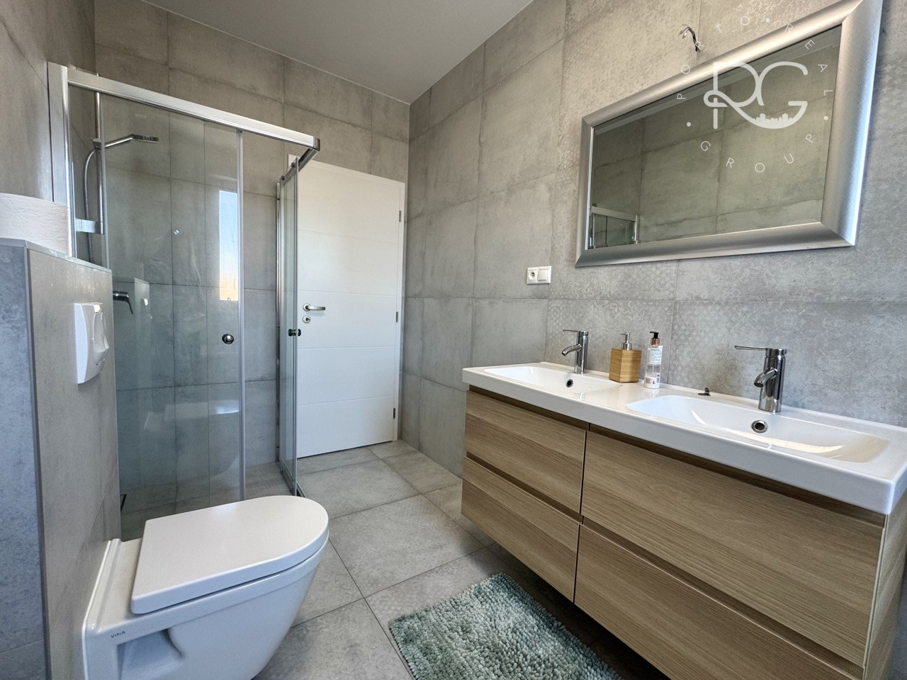 Realitná kancelária PORTO REAL GROUP Vám ponúka na predaj pekný a moderný 4-izbový RD so slnečnou záhradou, ktorý je súčasťou tehlového dvojdomu situovaný vo veľmi peknej a kľudnej lokalite v Rovinke na Nechtíkovej ulici. Bol skolaudovaný v roku 2020 a jeho podlahová plocha je 104,32 m2. Rozprestiera sa na takmer trojárovom pozemku, za automatickou bránou je parkovisko pre 3 autá a za domom je záhrada, ktorú si nový majiteľ môže vybudovať podľa vlastných predstáv. Na výstavbu boli použité tehly 300 cm, zateplenie polystyrénom 15 cm a okná disponujú izolačným trojsklom. Vykurovanie je samostatné teplovodné podlahové zabezpečené plynovým kotlom. V dome je predpríprava na krb, k dispozícii sú všetky inžinierske siete, samozrejmosťou je mestský vodovod a kanalizácia. Dom je zariadený v štandarde, nový majiteľ si môže dorobiť kuchyňu podľa vlastného vkusu. Interiér domu je dômyselne rozdelený na dennú a nočnú časť, má výborné dispozičné riešenie a veľmi dobrú svetelnosť. Na 1.NP je vstupná chodba, technická miestnosť, toaleta a priestranná obývačka spojená s kuchyňou, odkiaľ je výstup do záhrady cez veľkoformátové okná. Na 2.NP sa nachádzajú 3 neprechodné izby, priestranná kúpeľňa s vaňou aj sprchovacím kútom, dvojumývadlom so skrinkou a toaletou. Nový majiteľ rozhodne ocení, že daná lokalita poskytuje kľud a ticho ideálne pre rodinný komfort bývania. Nespornou výhodou je výborná strategická poloha, nakoľko sa do BA dostanete za 10 minút a do Šamorína za 10 minút, čo momentálne robí z Rovinky jednu z najrýchlejšie dostupných lokalít v okolí BA so žiadnymi, alebo minimálnymi dopravnými zápchami. Lokalita má výbornú občiansku vybavenosť, v pešej dostupnosti sa nachádza City Park Rovinka, kde je k dispozícii supermarket Billa, pekáreň, DM drogéria, reštaurácia, kaviareň, fitness centrum a iné, ďalej škôlka, zastávka MHD, reštaurácie, kaviarne, cukráreň, základná škola je dostupná za 3 min. autom. Lokalita je veľmi obľúbená aj pre možnosti športového vyžitia, nakoľko jazerá Košariská sú vzdialené len 4 km od domu a obec ponúka aj možnosti cykloturistiky a prechádzok v okolí. Všetky tieto aspekty predurčujú túto nehnuteľnosť ako ideálne bývanie či už pre mladé rodiny s deťmi, alebo aj pre aktívnych ľudí v strednom a vyššom veku, ktorí preferujú kľud a komfort prímestského bývania a zároveň atmosféru moderného vidieka so všetkými jeho benefitmi.