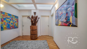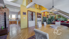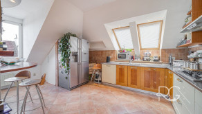 Realitná kancelária PORTO REAL GROUP Vám ponúka na predaj výnimočný mezonetový byt vo vyhľadávanej a lukratívnej mestskej časti Bratislava – Staré Mesto v tehlovom bytovom dome na Povrazníckej ulici. Tento byt s vynikajúcou svetelnosťou a výbornou dispozíciou sa nachádza na 5/5 poschodí (bez výťahu), má rozlohu až 215,6 m2 a disponuje priestrannou terasou o výmere takmer 30 m2, ktorá ponúka nádherný výhľad na mesto. Bytu dominuje obývačka s úctyhodnou výmerou až 73 m2 a veľmi vysokými stropmi, výška v najvyššom bode je až 4,7 m. Ide o veľmi pôsobivý otvorený priestor s krásnou svetelnosťou a pekným výhľadom, ktorý disponuje aj krbom obloženým štýlovým zeleným mramorom s vlastným komínom. Na konci je voľný prechod do kuchyne, ktorá je vybavená kuchynskou linkou na mieru so všetkými spotrebičmi a barovým stolíkom so stoličkami. Na tomto podlaží sa nachádzajú ďalšie 3 priestranné neprechodné izby, pričom izba, ktorá je využívaná ako hlavná spálňa má vlastný šatník a balkón. Nespornou výhodou sú aj 2 kúpeľne, väčšia (až 10 m2) je vybavená vaňou, 2 umývadlami, skrinkou, veľkým zrkadlom, toaletou a bidetom a menšia (5,30 m2) disponuje sprchovacím kútom, toaletou, umývadlom, zrkadlom a skrinkou. V hale je veľmi dômyselne riešený strop, ktorý je presklený matným sklom a priestoru dodáva krásne prirodzené svetlo. Tento detail pôsobí veľmi zaujímavo aj na 2.podlaží ako sklenená podlaha, kde v kombinácii s drevenou podlahou vytvára pôsobivý kontrast. Celé 2.podlažie je otvorený priestor, ktorý je momentálne využívaný ako pracovňa a priestor na relax. Veľmi pekným prvkom je vnútorný balkón s chrómovým zábradlím, z ktorého je pekný pohľad na obývačku zvrchu. Na tomto podlaží je aj prechod na nádhernú priestrannú a slnečnú terasu s orientáciou JZ, ktorá zaručuje úžasné výhľady na panorámu mesta a západy slnka. Je vybavená exteriérovým nábytkom a kovovou pergolou. Na vybavenie bytu boli použité kvalitné a nadštandardné materiály, väčšina zariadenia bola vyhotovená na mieru, na podlahách sú kvalitné drevené parkety, takže aj napriek staršej rekonštrukcii vyzerá byt stále veľmi dobre. Izby disponujú vstavanými skriňami a byt má navyše dva odkladacie priestory a disponuje tak bohatým úložným priestorom. Je zaujímavý aj z investičného hľadiska, nakoľko sa dá rozdeliť na 2 bytové jednotky. Vzhľadom k vysokým stropom a atypickému priestoru sa dá využiť aj ako ateliér. Zariadenie bytu okrem vstavaných súčastí je predmetom dohody s majiteľmi. Bytový dom je veľmi dobre udržiavaný, v roku 2024 bola zrenovovaná strecha a na prízemí je k dispozícii aj miestnosť na odkladanie bicyklov a kočíkov. Veľkým benefitom je jeho atraktívna poloha, vďaka ktorej sú všetky strategické miesta veľmi ľahko dostupné peši, alebo MHD - zastávky na rôzne smery sú vzdialené len pár metrov od domu. Napriek tomu, že ide o centrum mesta, je prostredie bytu aj terasy tiché a kľudné. Lokalita má vynikajúcu občiansku vybavenosť, v pešej vzdialenosti sú dostupné mnohé záujmové body, reštaurácie, kaviarne, parky, ako aj historické centrum mesta. Toto bývanie je ideálne aj pre mladé rodiny s deťmi, alebo pre aktívnych ľudí, ktorí preferujú mestské bývanie s pešou dostupnosťou.