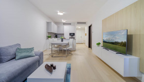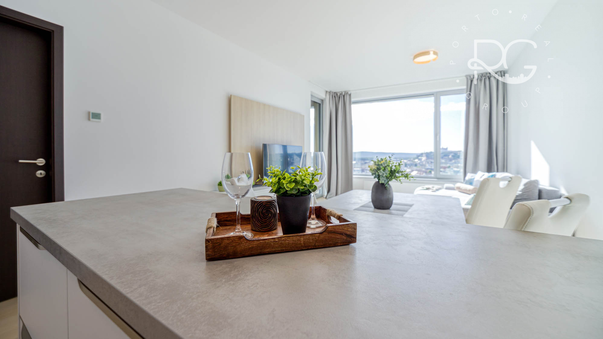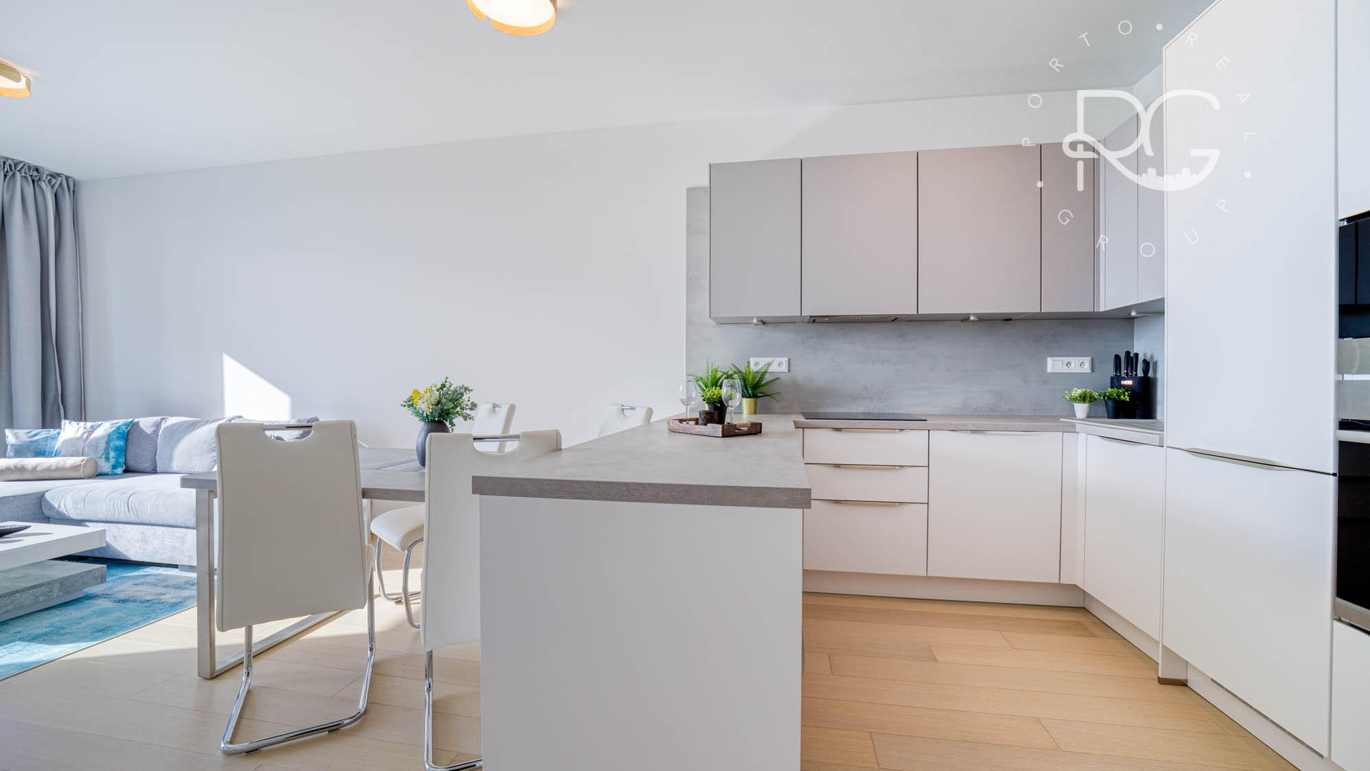 - novostavba - kompletne a na mieru zariadený (umývačka riadu, elektrická rúra, sklokeramická varná doska, mikrovlnná rúra, chladnička s mrazničkou, práčka,....), internet/televízia