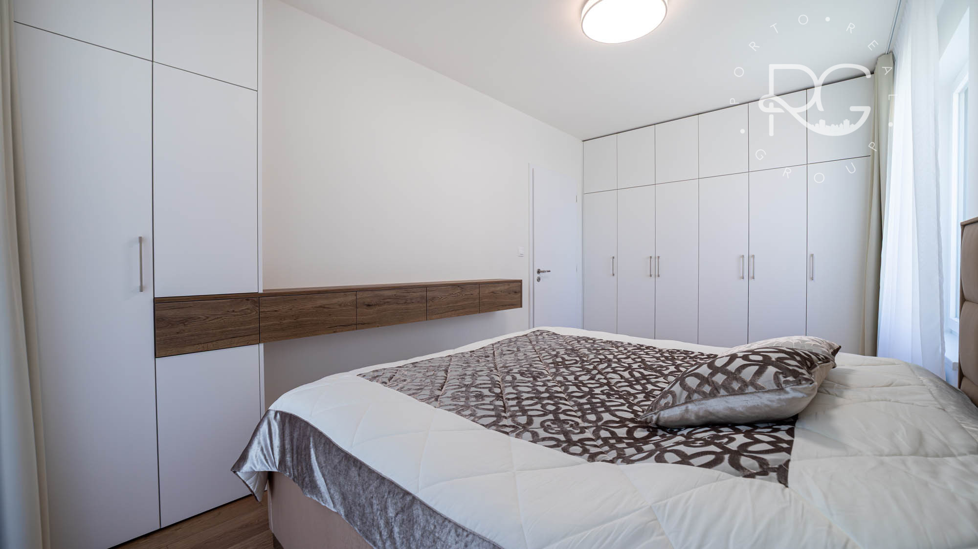 - spacia izba so vstavanou skriňou, manželskou posteľou a výstupom na loggiu