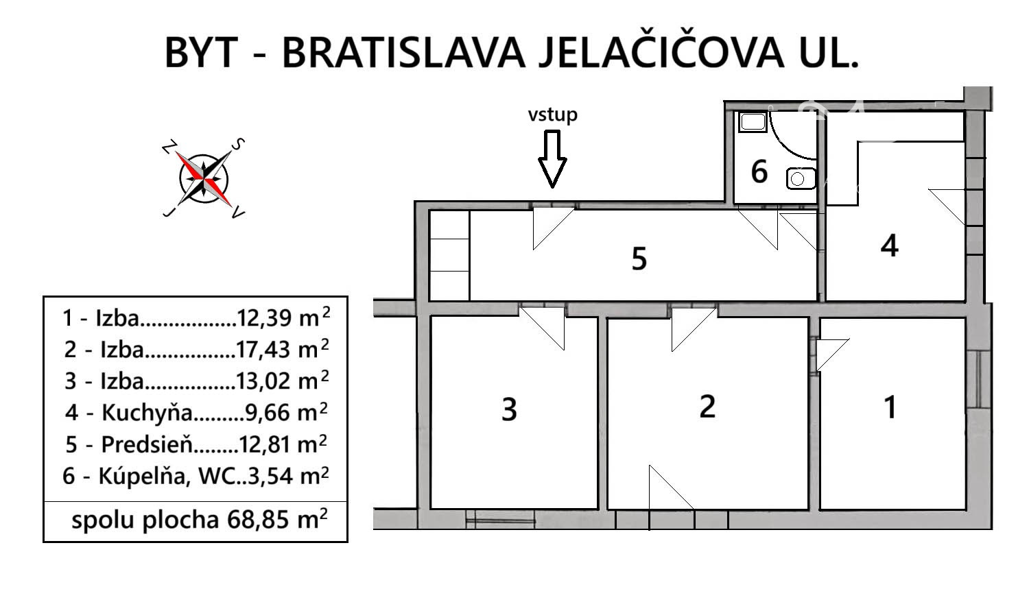 Realitná kancelária PORTO REAL GROUP Vám ponúka na predaj 3-izbový byt, s príjemnou atmosférou, nachádzajúci sa v jednej z najžiadanejších mestských častí Bratislavy – na Jelačičovej ulici. Jelačičova ulica sa nachádza v obľúbenej časti Ružinova – Nivy, len pár minút chôdze od Trnavského mýta a OC Centrál, tržnice, autobusovej stanice a OC Nivy , ako aj od trhoviska Miletičova. V okolí nájdete kompletnú občiansku vybavenosť – školy, škôlky, obchody, kaviarne aj športoviská. Vďaka svojej polohe byt patrí medzi najlepšie investičné nehnuteľnosti v Bratislave. Blízkosť biznis zóny Nivy, dopravné spojenie a vysoký dopyt po prenájmoch robia z tohto bytu stabilnú a výnosnú investíciu s istotou dlhodobej hodnoty. Byt sa nachádza na vyvýšenom 1NP podlaží.
