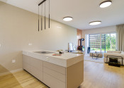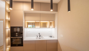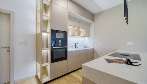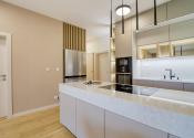 -kuchyňa vybavená kuchynskou linkou na mieru so vstavanými spotrebičmi, kuchynským ostrovčekom a jedálenským stolom so 4 stoličkami (9,05 m2)