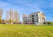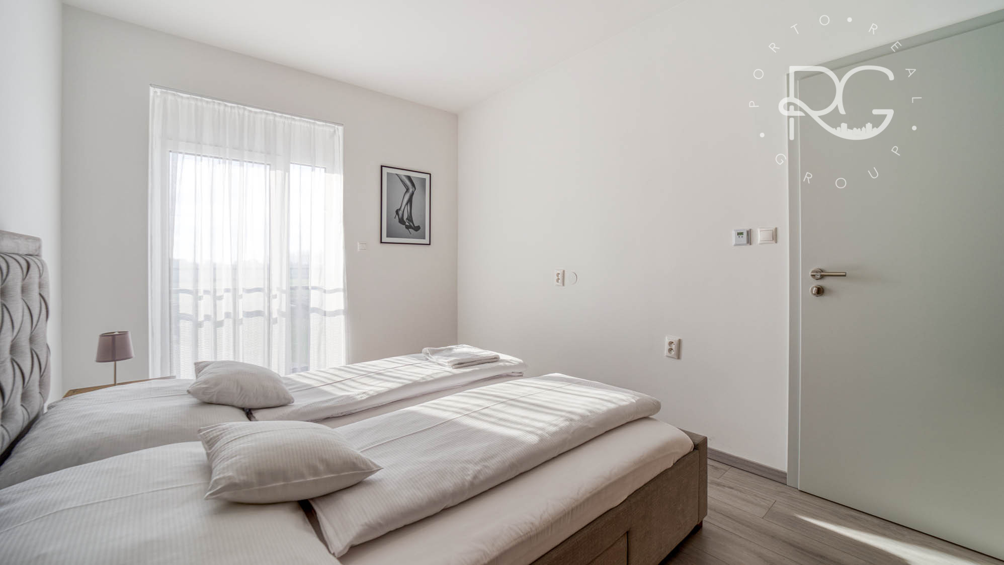 Realitná kancelária PORTO REAL GROUP vám ponúka na predaj krásny, kompletne a veľmi vkusne zariadený 2-izbový apartmán v novostavbe Rivapark v novovybudovanej lokalite v Dunajskej Strede na ulici Svätého Krištofa. Apartmánový dom stojí vo vnútri oploteného areálu a má priame prepojenie na termálne kúpalisko. Jeho súčasťou sú aj park, detské ihrisko a veľké parkovisko. Dom má veľmi pekný a udržiavaný vchod, ako aj celé okolie a je monitorovaný. Apartmán je situovaný na 4/5 NP, skolaudovaný bol v roku 2023. Disponuje klimatizáciou, aj rekuperáciou. Na oknách sú veľké exteriérové elektrické žalúzie, kúrenie je podlahové elektrické. Má výbornú dispozíciu a vynikajúcu svetelnosť. Je moderne a nadčasovo zariadený štýlovým nábytkom a kvalitnými spotrebičmi a je pripravený k nasťahovaniu bez potreby investície. Jeho celková výmera je 47,21 m2, výmera terasy je takmer 8 m2. Vstupná chodba disponuje vešiakovou stenou, z chodby je vstup do kúpeľne, ktorá je vybavená priestranným sprchovacím kútom, umývadlom so skrinkou, práčkou, ďalšímí skrinkami a toaletou. V samostatnej spálni je k dispozícii manželská posteľ s kvalitnými matracmi a nočnými stolíkmi, vstavaná 6 dielna skriňa, ktorá poskytujú dostatok úložného priestoru. Obývacia miestnosť je vybavená sedacou súpravou a fotelou a televízorom a je prepojená s kuchyňou, ktorá je zariadená kuchynskou linkou na mieru so všetkými spotrebičmi – umývačka riadu, teplovzdušná rúra, sklokeramická varná doska, mikrovlnná rúra, digestor, chladnička s mrazničkou, ako aj jedálenským stolom so 4 stoličkami. K dispozícii je terasa s krásnym výhľadom do zelene zariadená exteriérovým nábytkom – stolom a 2 stoličkami. Vzhľadom k svojej polohe má tento skvelý byt aj vynikajúci investičný potenciál, nakoľko je tu vďaka bezprostrednej blízkosti kúpaliska zvýšený dopyt po krátkodobých nájmoch.