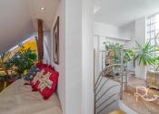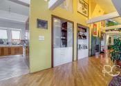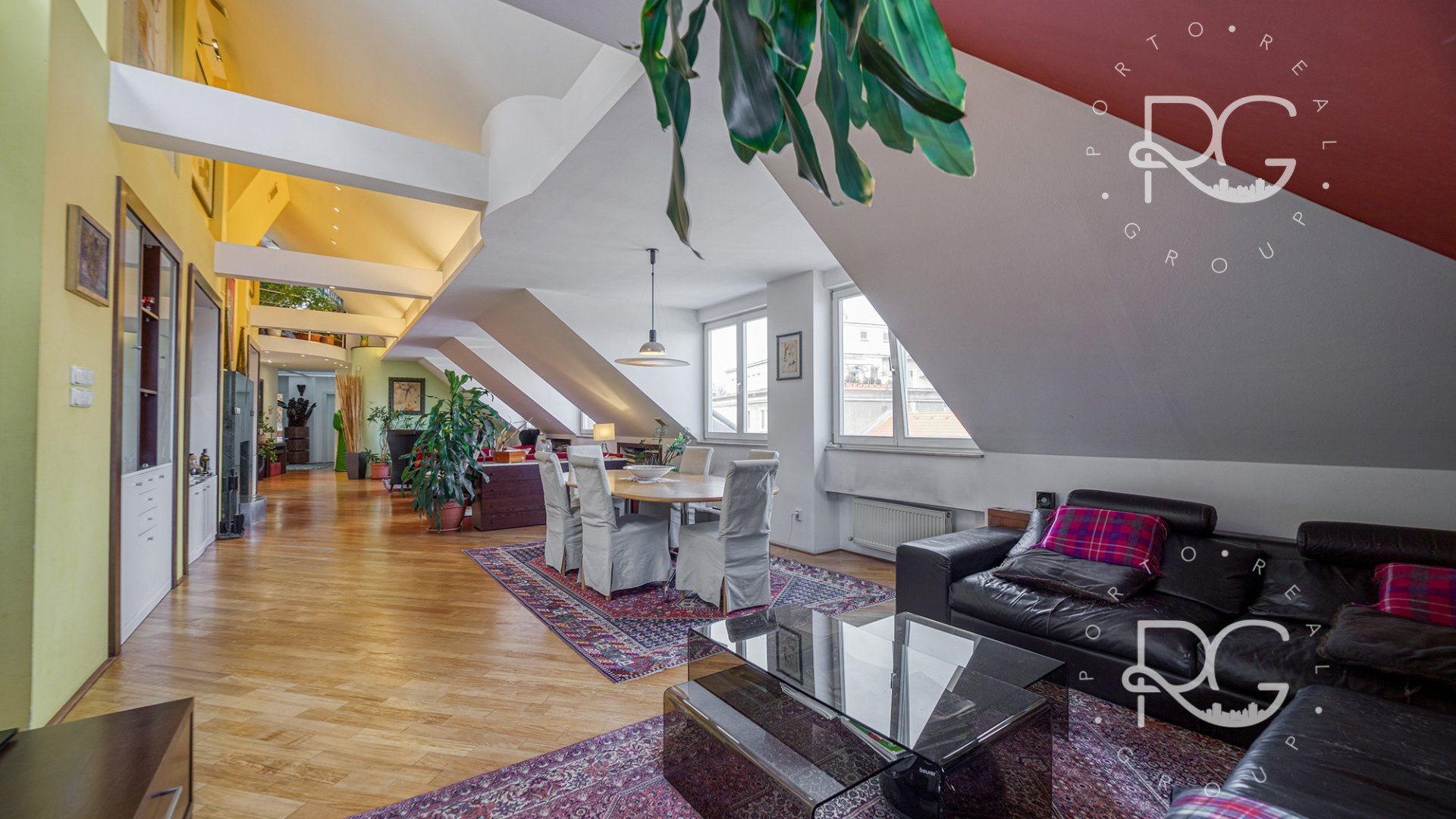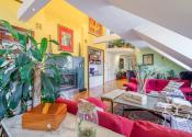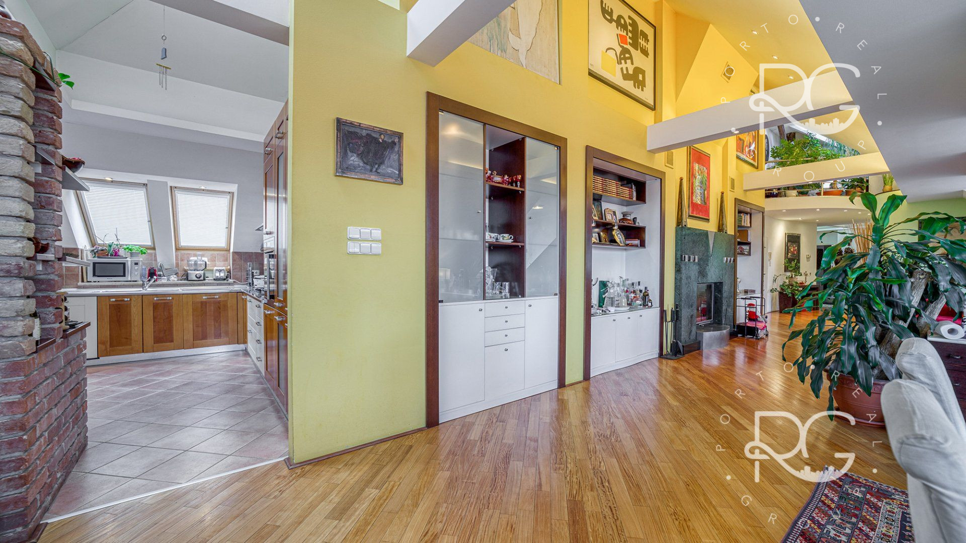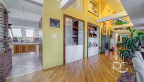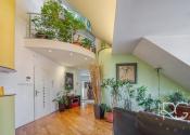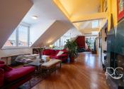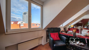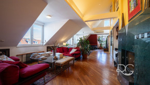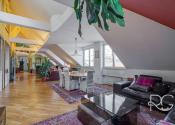 Realitná kancelária PORTO REAL GROUP Vám ponúka na predaj výnimočný mezonetový byt vo vyhľadávanej a lukratívnej mestskej časti Bratislava – Staré Mesto v tehlovom bytovom dome na Povrazníckej ulici. Tento byt s vynikajúcou svetelnosťou a výbornou dispozíciou sa nachádza na 5/5 poschodí (bez výťahu), má rozlohu až 215,6 m2 a disponuje priestrannou terasou o výmere takmer 30 m2, ktorá ponúka nádherný výhľad na mesto. Bytu dominuje obývačka s úctyhodnou výmerou až 73 m2 a veľmi vysokými stropmi, výška v najvyššom bode je až 4,7 m. Ide o veľmi pôsobivý otvorený priestor s krásnou svetelnosťou a pekným výhľadom, ktorý disponuje aj krbom obloženým štýlovým zeleným mramorom s vlastným komínom. Na konci je voľný prechod do kuchyne, ktorá je vybavená kuchynskou linkou na mieru so všetkými spotrebičmi a barovým stolíkom so stoličkami. Na tomto podlaží sa nachádzajú ďalšie 3 priestranné neprechodné izby, pričom izba, ktorá je využívaná ako hlavná spálňa má vlastný šatník a balkón. Nespornou výhodou sú aj 2 kúpeľne, väčšia (až 10 m2) je vybavená vaňou, 2 umývadlami, skrinkou, veľkým zrkadlom, toaletou a bidetom a menšia (5,30 m2) disponuje sprchovacím kútom, toaletou, umývadlom, zrkadlom a skrinkou. V hale je veľmi dômyselne riešený strop, ktorý je presklený matným sklom a priestoru dodáva krásne prirodzené svetlo. Tento detail pôsobí veľmi zaujímavo aj na 2.podlaží ako sklenená podlaha, kde v kombinácii s drevenou podlahou vytvára pôsobivý kontrast. Celé 2.podlažie je otvorený priestor, ktorý je momentálne využívaný ako pracovňa a priestor na relax. Veľmi pekným prvkom je vnútorný balkón s chrómovým zábradlím, z ktorého je pekný pohľad na obývačku zvrchu. Na tomto podlaží je aj prechod na nádhernú priestrannú a slnečnú terasu s orientáciou JZ, ktorá zaručuje úžasné výhľady na panorámu mesta a západy slnka. Je vybavená exteriérovým nábytkom a kovovou pergolou. Na vybavenie bytu boli použité kvalitné a nadštandardné materiály, väčšina zariadenia bola vyhotovená na mieru, na podlahách sú kvalitné drevené parkety, takže aj napriek staršej rekonštrukcii vyzerá byt stále veľmi dobre. Izby disponujú vstavanými skriňami a byt má navyše dva odkladacie priestory a disponuje tak bohatým úložným priestorom. Je zaujímavý aj z investičného hľadiska, nakoľko sa dá rozdeliť na 2 bytové jednotky. Vzhľadom k vysokým stropom a atypickému priestoru sa dá využiť aj ako ateliér. Zariadenie bytu okrem vstavaných súčastí je predmetom dohody s majiteľmi. Bytový dom je veľmi dobre udržiavaný, v roku 2024 bola zrenovovaná strecha a na prízemí je k dispozícii aj miestnosť na odkladanie bicyklov a kočíkov. Veľkým benefitom je jeho atraktívna poloha, vďaka ktorej sú všetky strategické miesta veľmi ľahko dostupné peši, alebo MHD - zastávky na rôzne smery sú vzdialené len pár metrov od domu. Napriek tomu, že ide o centrum mesta, je prostredie bytu aj terasy tiché a kľudné. Lokalita má vynikajúcu občiansku vybavenosť, v pešej vzdialenosti sú dostupné mnohé záujmové body, reštaurácie, kaviarne, parky, ako aj historické centrum mesta. Toto bývanie je ideálne aj pre mladé rodiny s deťmi, alebo pre aktívnych ľudí, ktorí preferujú mestské bývanie s pešou dostupnosťou.