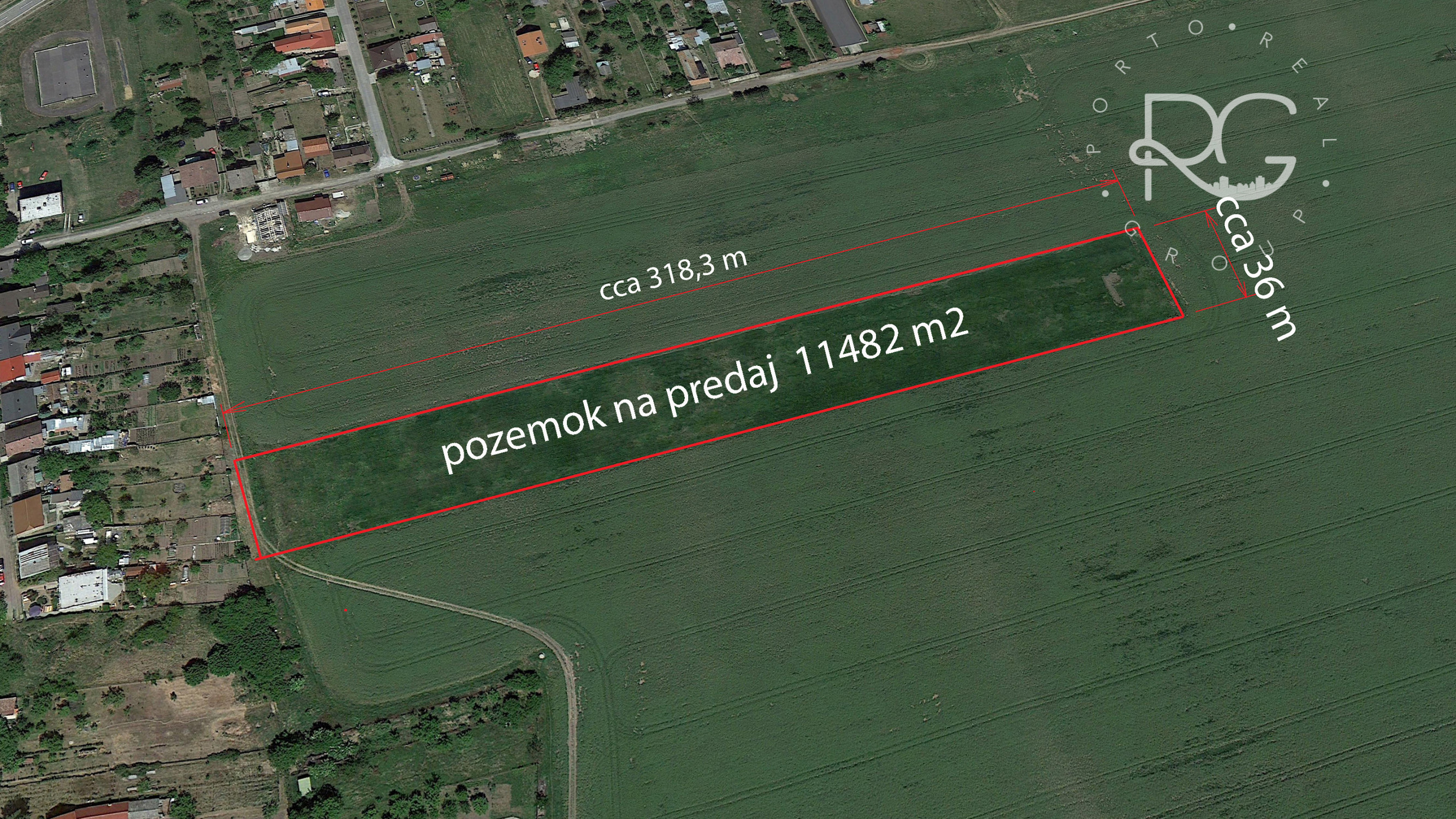 - šírka pozemku cca 36 m a dĺžka pozemku cca 318,3 m