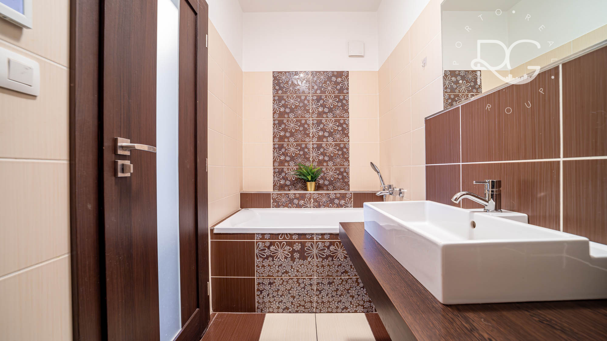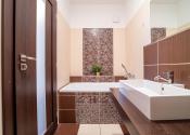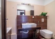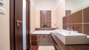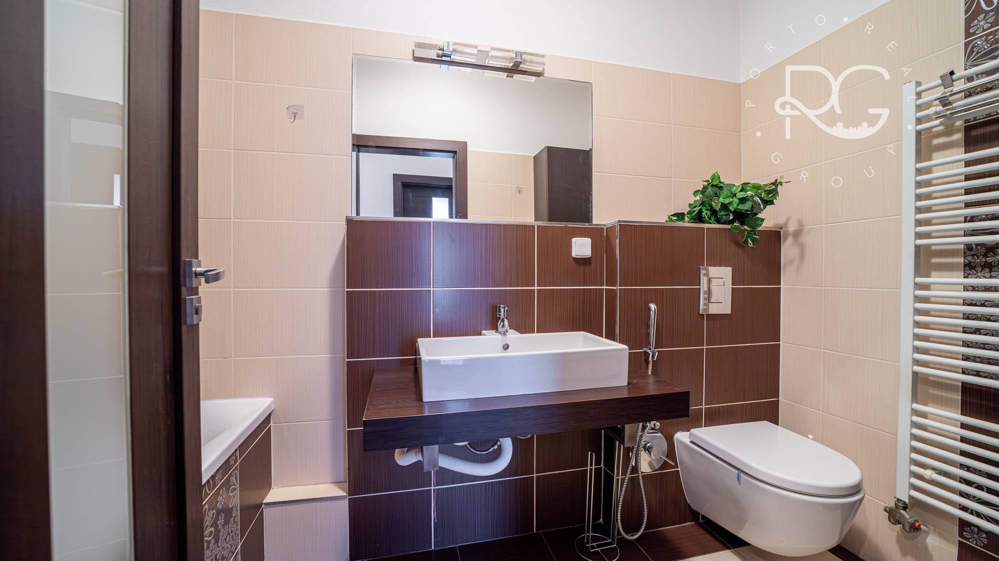 -kúpeľňa s vaňou, umývadlom, zrkadlom, skrinkou a toaletou