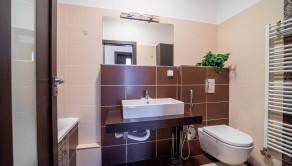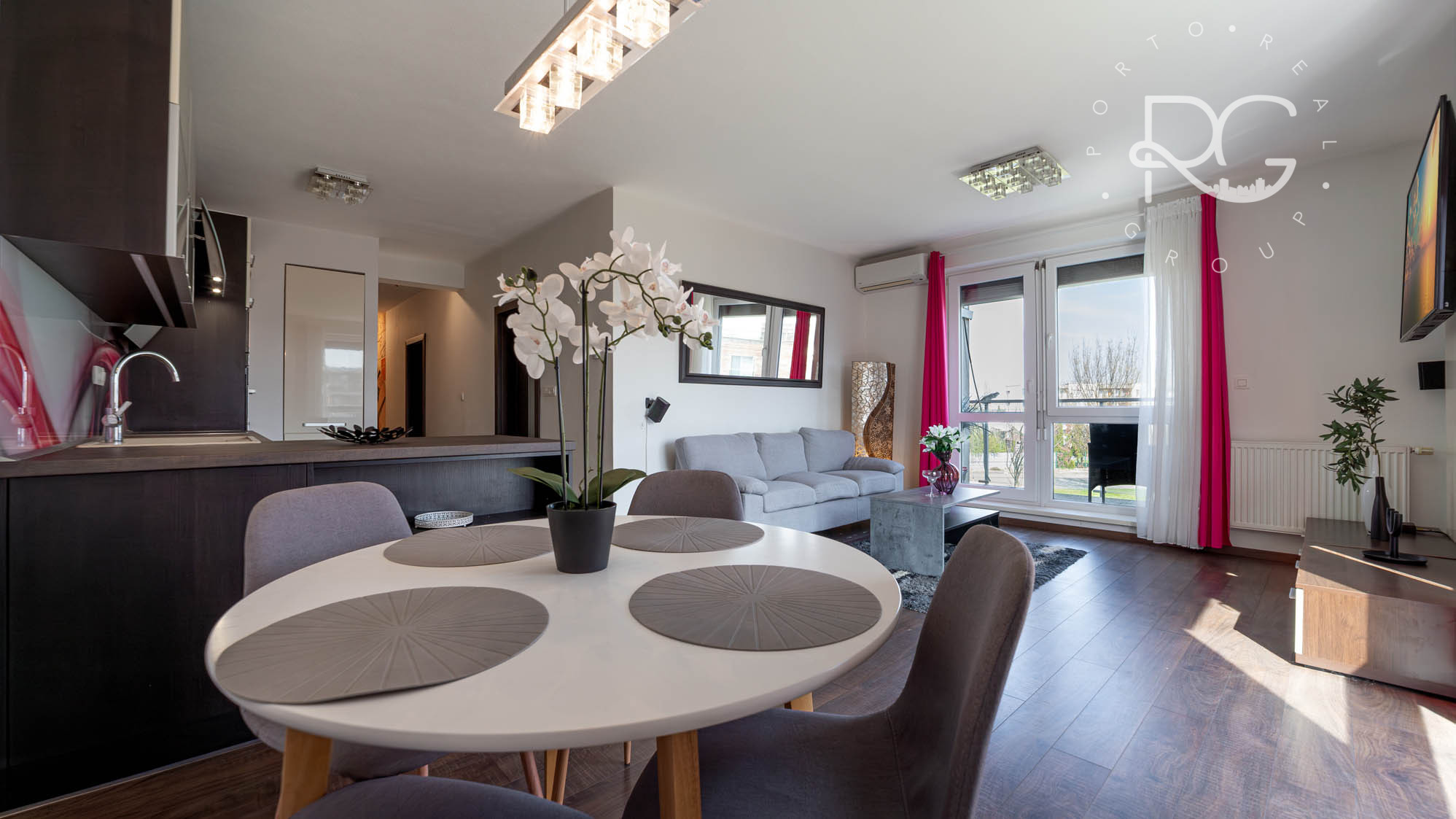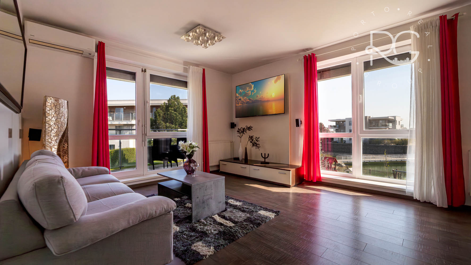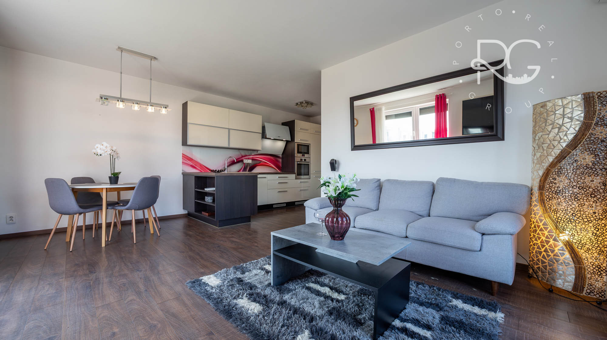 Realitná kancelária PORTO REAL GROUP vám ponúka na predaj moderný, kompletne zariadený 3-izbový byt v krásnej, kľudnej lokalite v Senci na Ružovej ulici situovaný na 1/2 poschodí s výťahom. Nachádza sa vo vyhľadávanom projekte Senec gardens, ktorý je obľúbený pre svoj vibe „malého mestečka“ s jazierkom a krásnymi udržiavanými zelenými plochami a promenádami, kde prevažujú rodinné domy a nízke bytové domy. Tehlový bytový dom bol daný do užívania v roku 2012 a predstavuje vyšší štandard bývania. Byt s výmerou 73,05 m2 má výborné dispozičné riešenie, disponuje plastovými oknami s izolačným trojsklom s exteriérovými hliníkovými žaluziami. Kúrenie je zabezpečené vlastným vysokovýhrevným plynovým kotlom, ktorý bol pravidelne servisovaný, v kúpeľni je aj podlahové kúrenie a k dispozícii sú 2 klimatizačné jednotky. Obývacia izba je prepojená s kuchyňou a vďaka veľkoformátovým oknám poskytuje krásny výhľad na jazierko a do upraveného zeleného vnútrobloku. Je vybavená sedacou súpravou, stolíkmi, kobercom a televízorom a prechádza sa z nej na priestrannú loggiu, ktorá je zariadená exteriérovým nábytkom. Kuchyňa je vybavená kuchynskou linkou na mieru vrátane všetkých elektrospotrebičov – sklokeramická varná doska, teplovzdušná rúra, mikrovlnná rúra, digestor, umývačka riadu a chladnička s mrazničkou, k dispozícii je aj potravinová skriňa a jedálenský stôl so 4 stoličkami. Ďalšie 2 neprechodné izby sú zariadené posteľami a vstavanými skriňami. V kúpeľni sa nachádza vaňa, umývadlo, skrinka a toaleta. Obrovským bonusom je aj garážové parkovacie miesto a pivničná kobka, obidve umiestnené na -1 podlaží bytového domu. Nový majiteľ rozhodne ocení, že byt je kompletne zariadený nábytkom vrátane spotrebičov, disponuje dostatkom úložného priestoru a je pripravený k okamžitému nasťahovaniu bez potreby ďalších investícií. Lokalita má veľmi dobrú dostupnosť do centra Senca, ktorý má výbornú občiansku vybavenosť. Supermarkety Billa, Lidla, Kaufland a Tesco, ako aj a ďalšie obchody, služby, reštaurácie a kaviarne sú vzdialené cca 5 minút autom. Nespornou výhodou je aj zastávka MHD (linka 620) v rámci areálu, a to len cca 200 m od domu, ktorá premáva do Bratislavy – priamy spoj na autobusovú stanicu Nivy, ale aj do centra Senca a k dispozícii je aj vlakové spojenie. V Senci sú k dispozícii 3 súkromné a 2 štátne škôlky, základné školy, gymnázium a stredná škola. Vďaka rýchlemu napojeniu na diaľničný obchvat sa do Bratislavy dostanete za cca 20 minút. Toto bývanie je ideálnou voľbou pre aktívnych jedincov, ako aj pre mladé rodiny s deťmi, ktorí preferujú komfort prímestského bývania a zároveň atmosféru moderného vidieka so všetkými jeho benefitmi, nakoľko lokalita ponúka aj športové areály, ihriská, chill zóny, komunitné priestory a cyklotrasy v okolí, čo je pridanou hodnotou oproti klasickým novostavbám pri Bratislave, kde sú väčšinou len parkoviská a bloky.