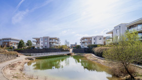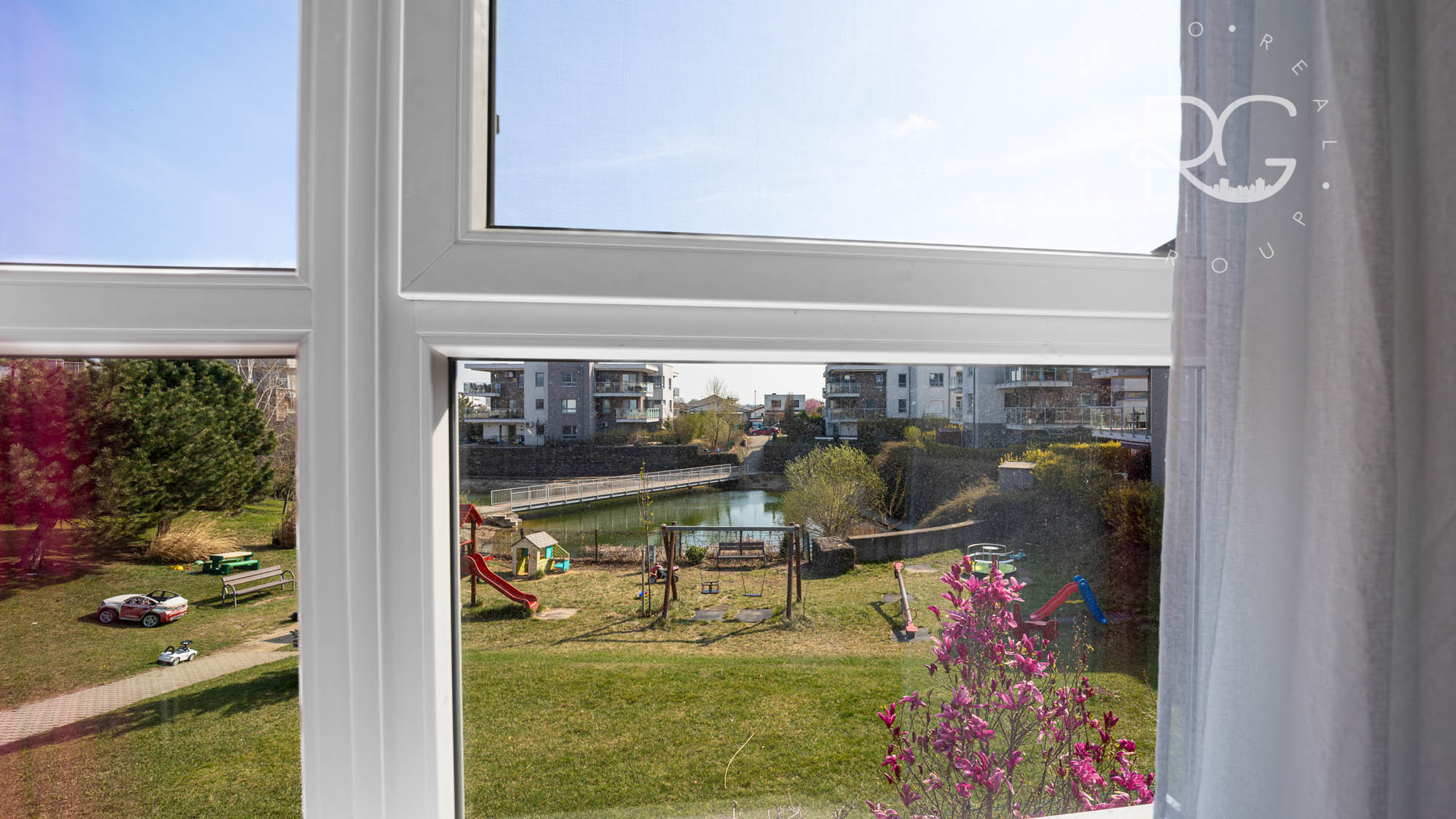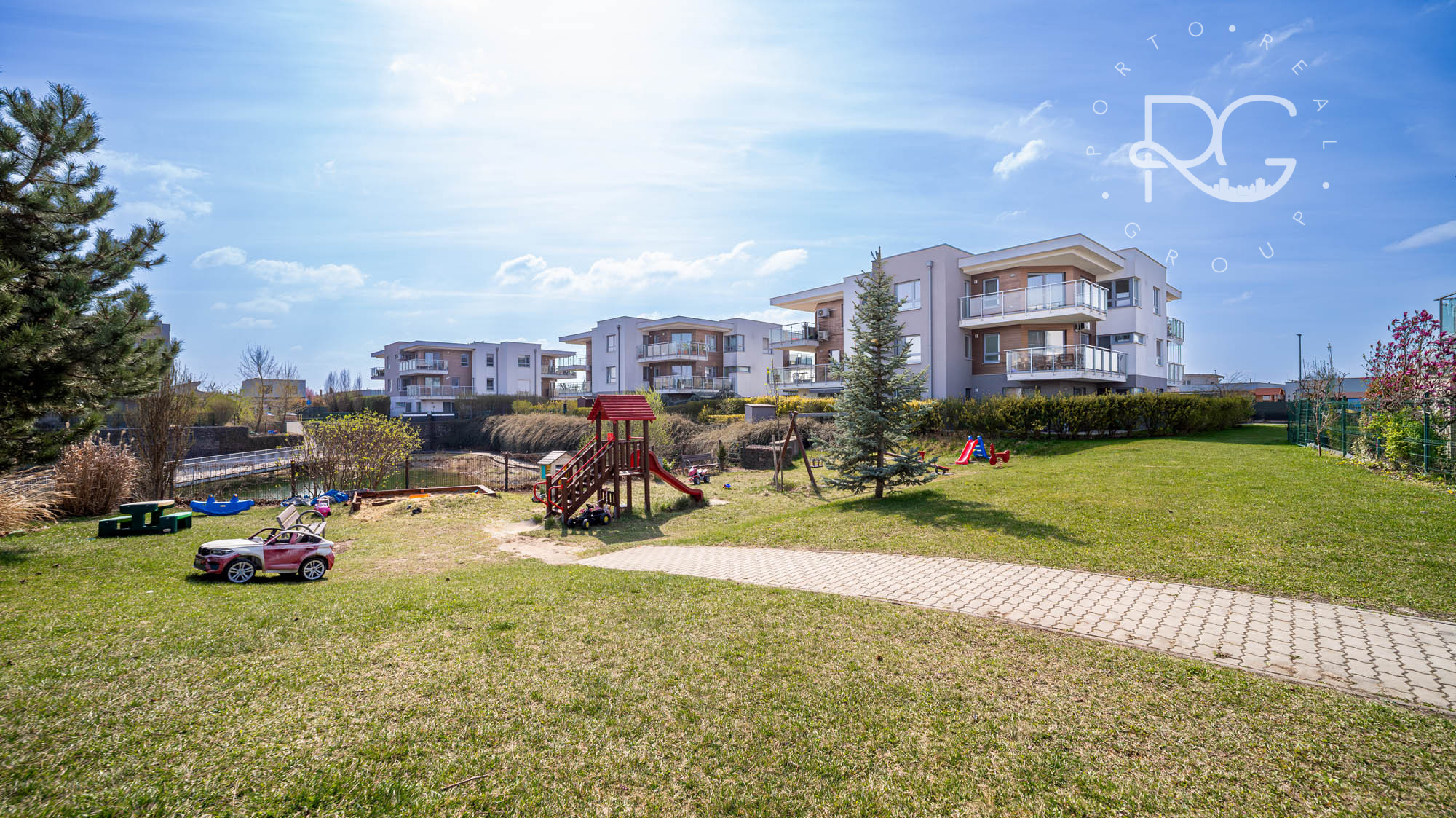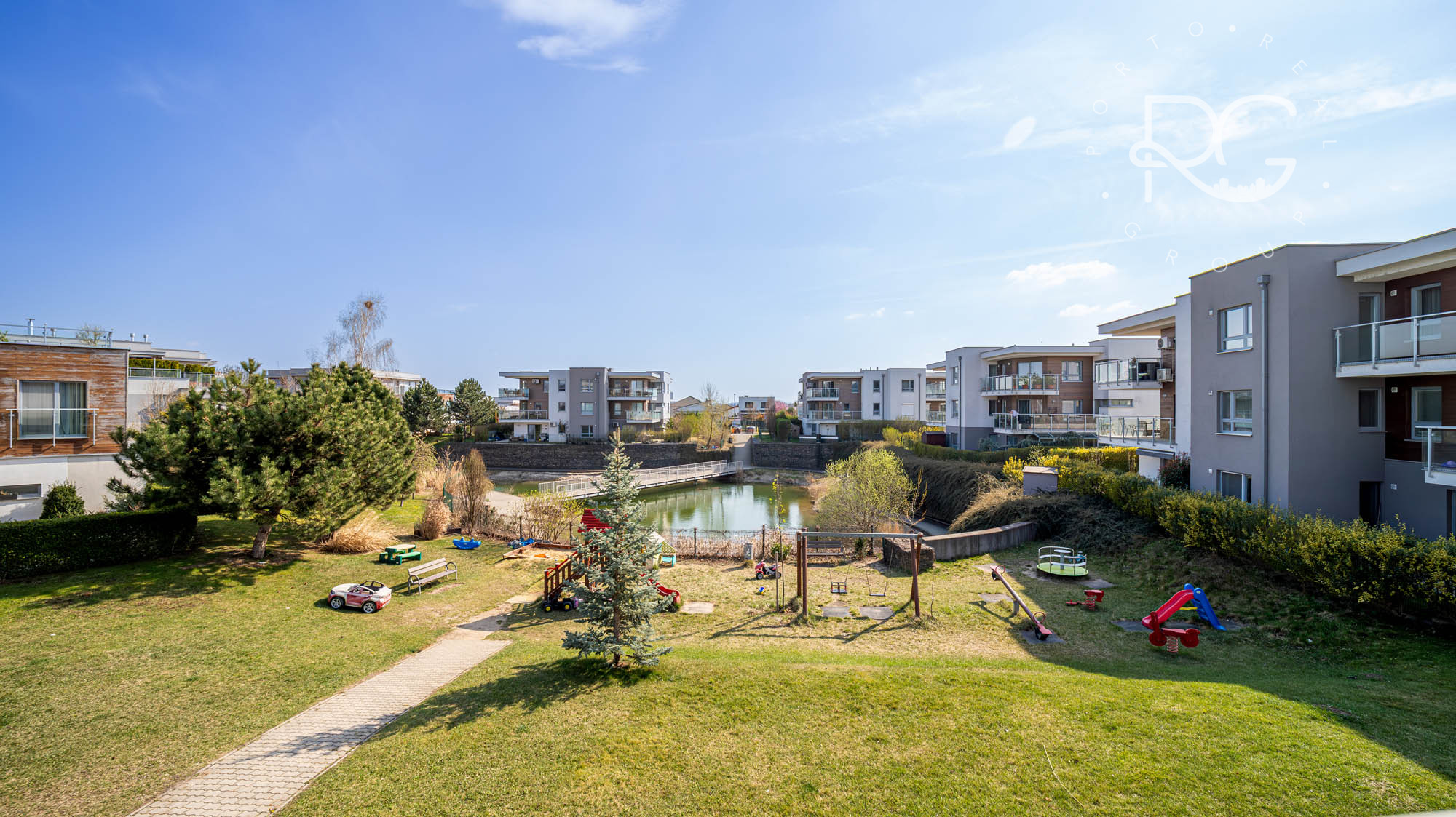 -nádherná kľudná a bezpečná lokalita s jazierkom a udržiavanými zelenými plochami