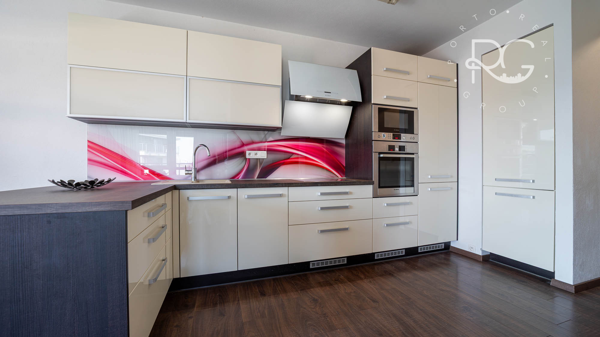 -kuchyňa s kuchynskou linkou, všetkými spotrebičmi, potravinová skriňa a jedálenský stôl so stoličkami