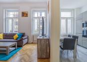 Realitná kancelária PORTO REAL GROUP Vám ponúka na prenájom dizajnový priestranný 2 izbový byt v jednej z najvyhľadávanejších lokalít v Starom Meste na Palisádoch. Tento krásny staromestský byt s výbornou svetelnosťou sa nachádza na 1. NP, má rozlohu 62 m2 a disponuje typickými vysokými stropmi, drevenými parketami a dvojkrídlovými dverami. Je kompletne a veľmi vkusne zariadený nábytkom a elektrospotrebičmi, obývačke dominuje krb, ktorý navodzuje veľmi príjemnú atmosféru a kuchyňa je vybavená modernou novou kuchynskou linkou na mieru so všetkými spotrebičmi a jedálenským kútom. V spálni je manželská posteľ a veľmi priestranná vstavaná skriňa, kúpeľňa má k dispozícii sprchovací kút, práčku a sušičku. V byte je nová klimatizácia. Lokalita poskytuje bezkonkurenčnú občiansku vybavenosť, nakoľko je všetko v pešej dostupnosti a historické centrum, kde je množstvo obľúbených kaviarní a reštaurácií, je dostupné za 5 minút pešou chôdzou. Tieto aspekty predurčujú tento skvelý byt hlavne pre aktívnych ľudí, ktorí ocenia, že sa všade dostanú peši a môžu si naplno užiť čaro staromestských ulíc. V prípade záujmu sa dajú dohodnúť podmienky parkovania s majiteľmi.